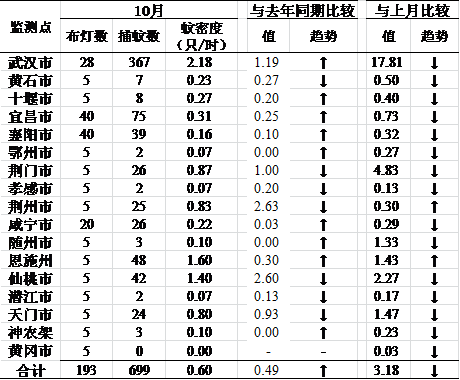为保证湖北省病媒生物监测工作的顺利开展,有效应对各种虫媒传染病的发生和流行,按照《湖北省病媒生物监测方案》(2013版)要求,全省17个市州开设了病媒生物监测点,已经逐渐开展了病媒生物监测。现将湖北省2015年10月各市(州)开展病媒生物监测情况汇报如下:
