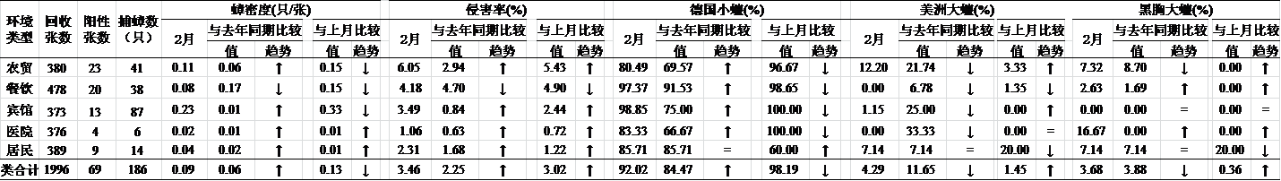 根据我省病媒生物监测方案,12月、1月和2月可以不开展蚊类、蝇类监测,故在12月、2月和2月的病媒生物监测简报中只有鼠和蟑的监测数据分析。