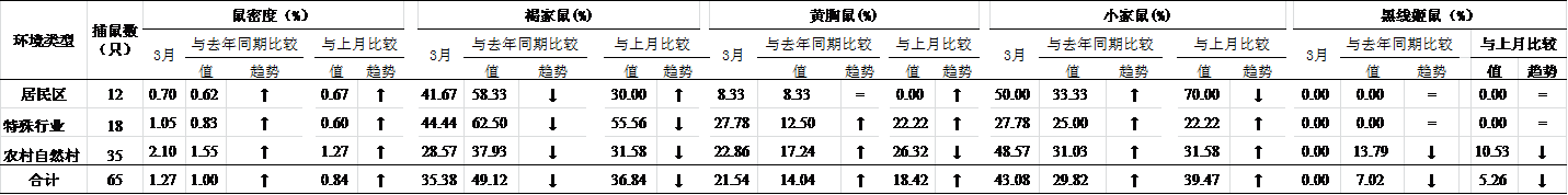 根据我省病媒生物监测方案,鼠、蟑为全年开展监测,而蚊类、蝇类监测可以在12月、1月和2月不开展,故本月的病媒生物监测简报中蚊和蝇只有当月和去年同期数据分析。