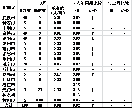为保证湖北省病媒生物监测工作的顺利开展,有效应对各种虫媒传染病的发生和流行,按照《湖北省病媒生物监测方案》(2013版)要求,全省17个市州开设病媒生物监测点,现将湖北省2016年3月各市(州)开展病媒生物监测情况汇报如下: