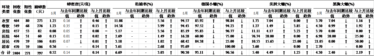 2、各市(州)蟑密度和蟑粘捕率监测结果