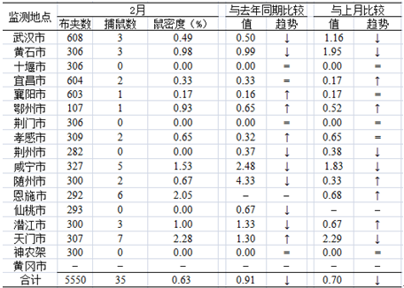 表3 2015年2月湖北省各市(州)病媒生物监测结果—鼠密度