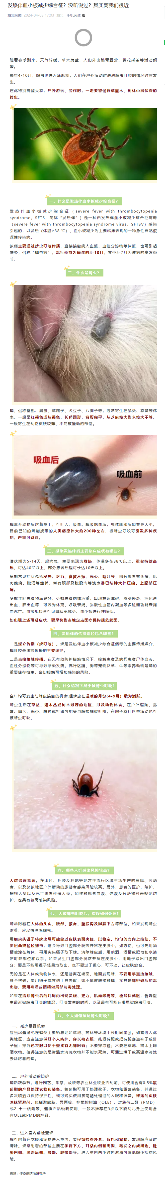发热伴血小板减少综合征?没听说过?其实离我们很近