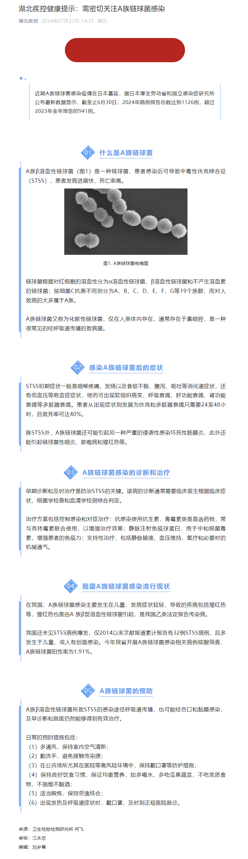 湖北疾控健康提示:需密切关注A族链球菌感染