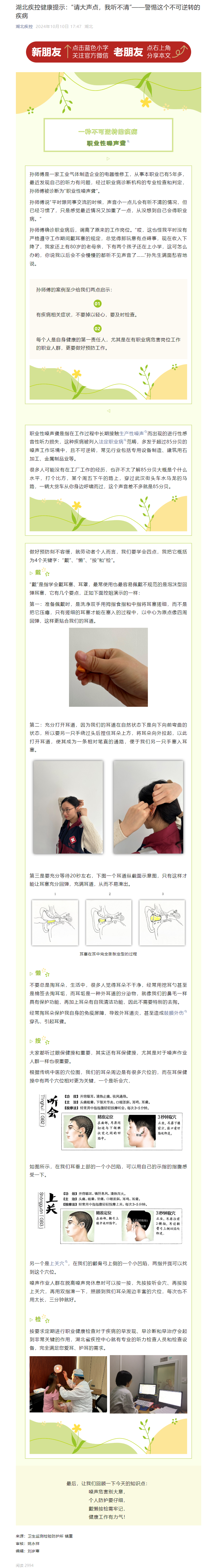 湖北疾控健康提示:“请大声点,我听不清”——警惕这个不可逆转的疾病