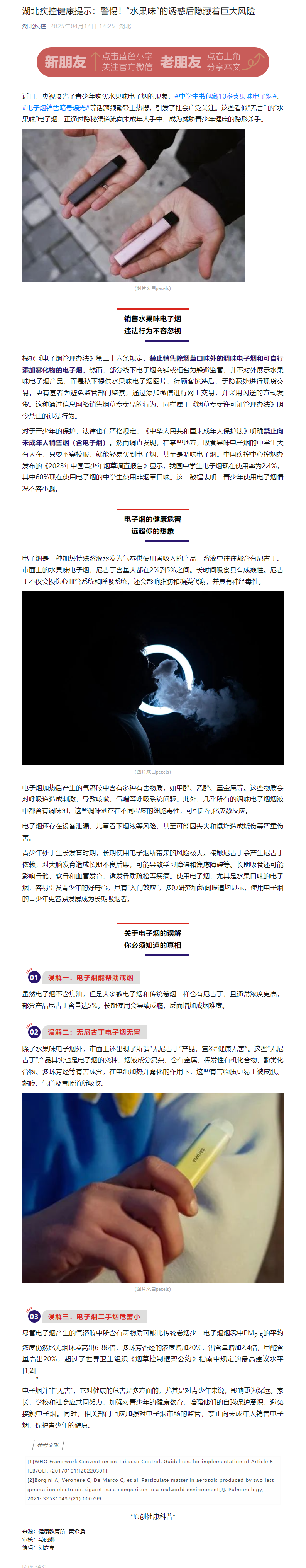 湖北疾控健康提示:警惕!“水果味”的诱惑后隐藏着巨大风险