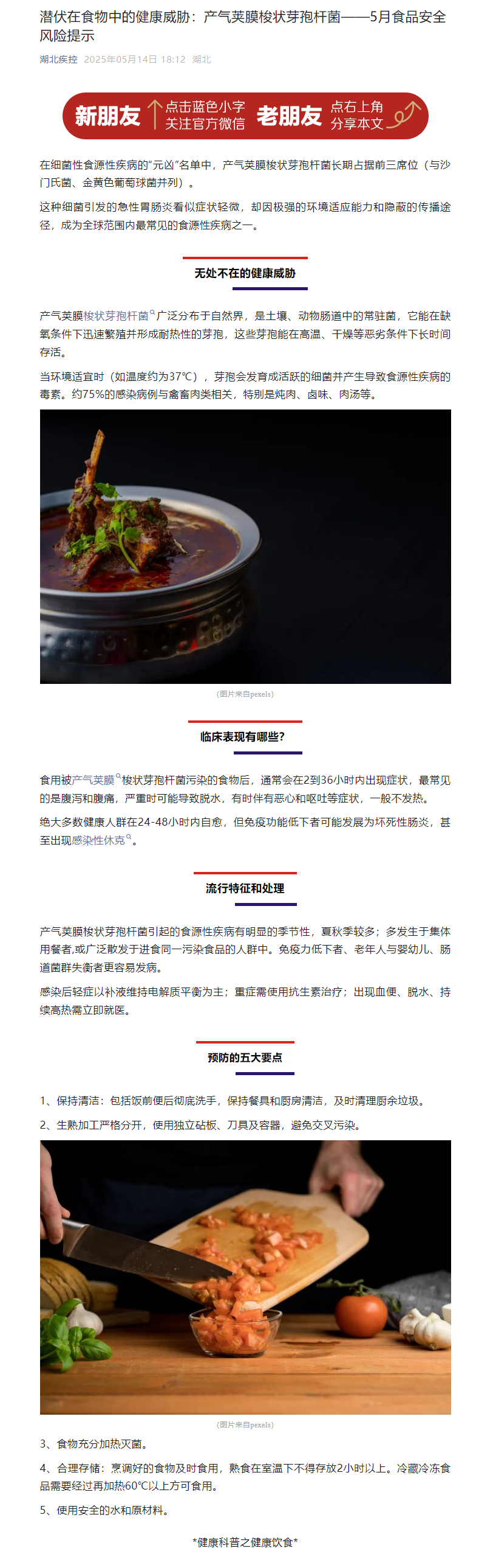 潜伏在食物中的健康威胁:产气荚膜梭状芽孢杆菌——5月食品安全风险提示