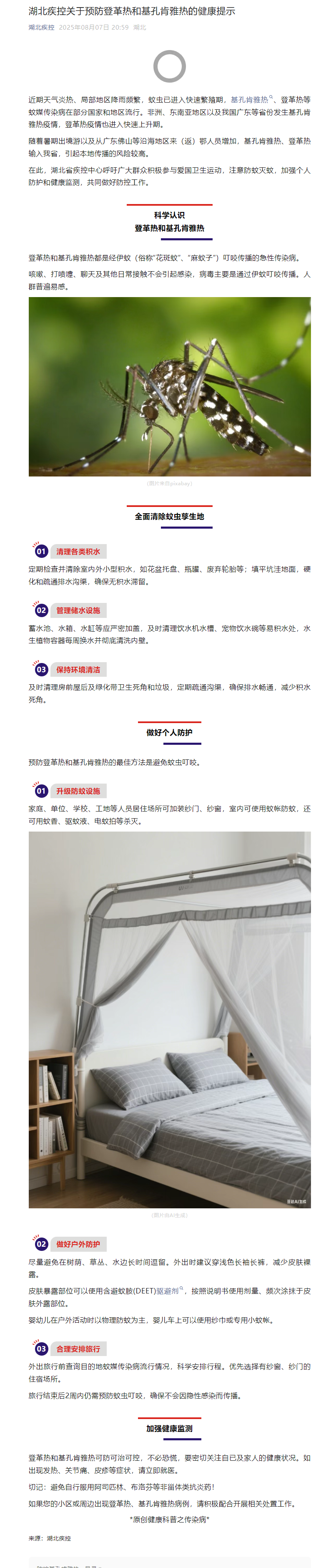 湖北疾控健康提示:居家和外出时,如何科学防控基孔肯雅热?