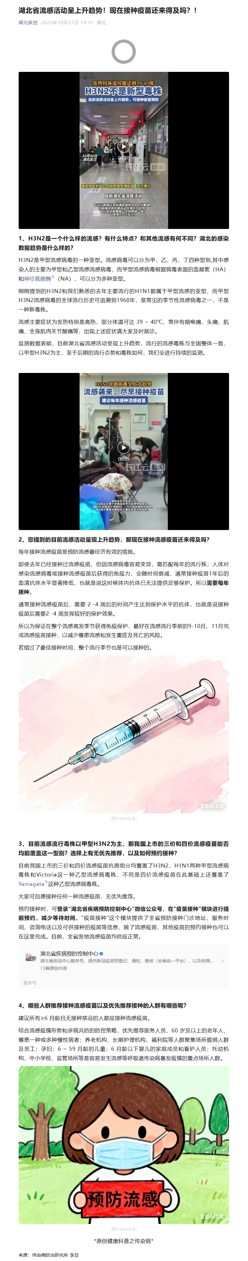 湖北省流感活动呈上升趋势!现在接种疫苗还来得及吗?!