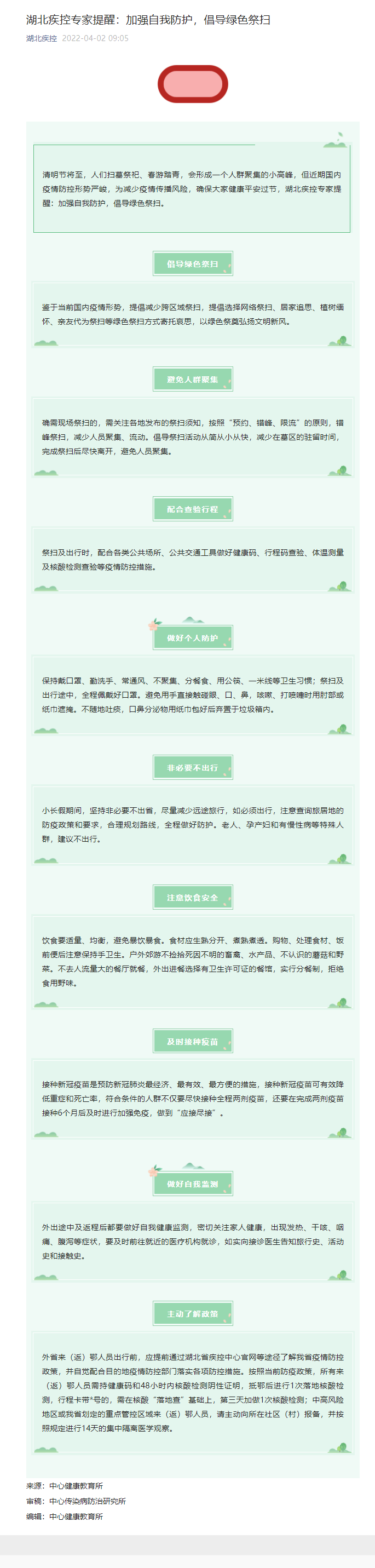 湖北疾控专家提醒:加强自我防护,倡导绿色祭扫