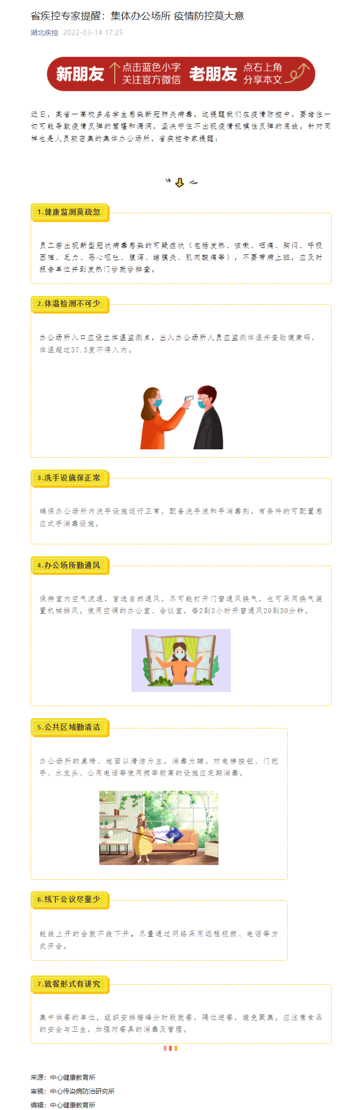 省疾控专家提醒:集体办公场所 疫情防控莫大意