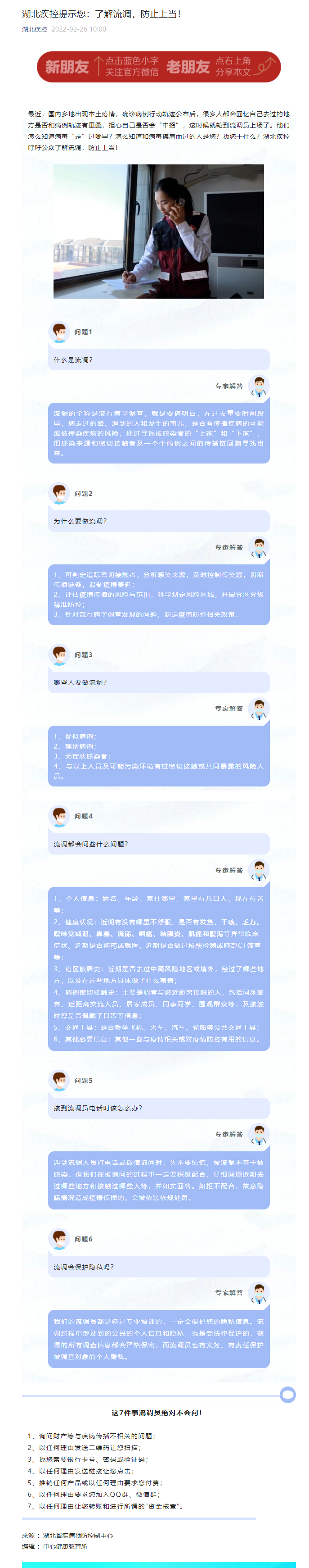 湖北疾控提示您:了解流调,防止上当!
