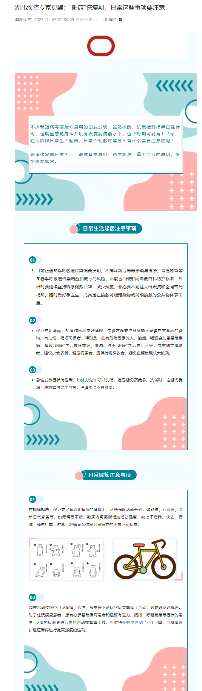 湖北疾控专家提醒:“阳康”恢复期,日常这些事项要注意