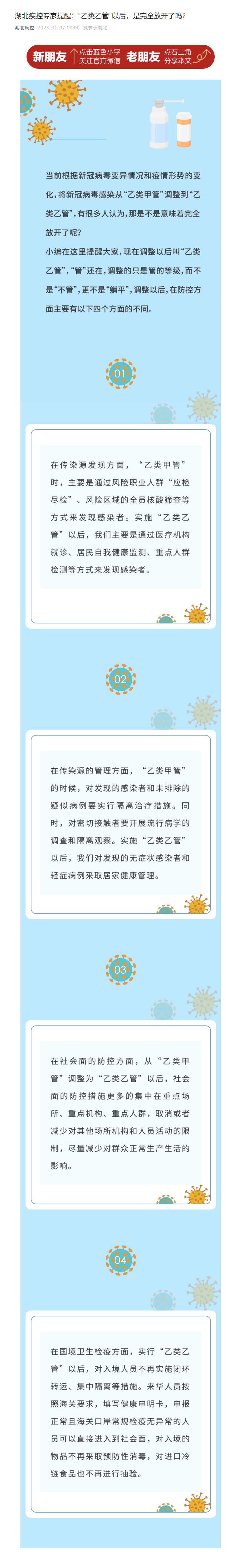湖北疾控专家提醒:“乙类乙管”以后,是完全放开了吗?