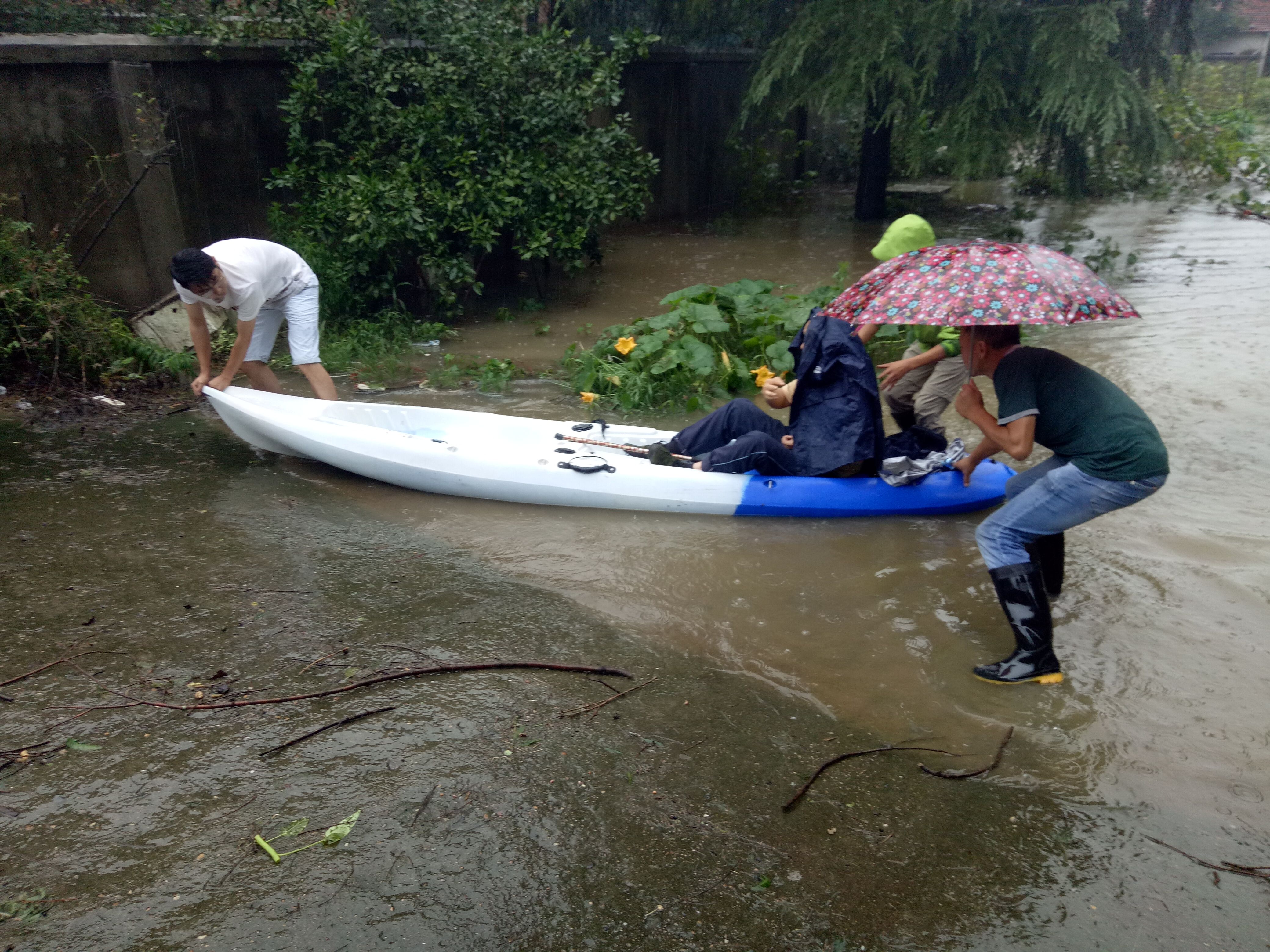 在这危急时刻,中心主任喻同琦立即做出了安排部署,组织中心副主任徐胜平等7名党员干部前往老站院内展开了防洪救灾工作。暴雨不停,院内积水不断上升,徐胜平同志以身作则义无反顾的顶着暴雨踏入了近1米深的积水中,随后其他几名党员及入党积极分子纷纷跟着徐胜平同志的脚步带着救援船只到达被困职工家中。最终,通过以徐胜平为首的7名同志的努力,成功的转移了被困在老站内的两名独居老人。