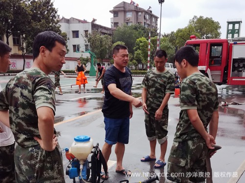 受连日强降雨影响,沙洋县城区部分区域内涝严重。75日下午,城区积水排除后,该县疾控中心迅速派出两支应急消杀小分队(每队八人),参与并指导受灾单位实施紧急消毒工作。