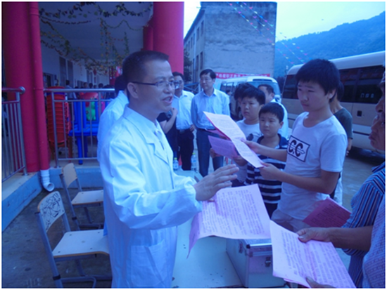 619日凌晨3:00至早晨8:00,蕲春县蕲北地区突降百年未遇的特大暴雨,给当地群众的生命财产造成了极大的损失,也给灾后卫生防病工作带来了极大的挑战。特别是受灾地区逐渐进入高温季节,各种诱发疾病危险因素增多,容易引起多种疾病的发生和传染病的暴发与流行。为配合救灾防病应急工作开展,健教科于当日跟随卫计局陈盛喜局长和疾控中心陈俊新主任一行对灾情最为严重的张榜、大同、檀林、向桥等四个乡镇开展调查摸底排查。当晚按照领导布置就救灾防病和灾民自身防护等内容连夜迅速编排出“洪涝灾害卫生防病知识要点”挂网并联系印刷1万份于次日早分发到孙冲两个临时安置点的灾民手中。同时配合消杀组和流调组的工作开展现场向灾民讲解示范饮水、环境消杀知识与方法以及救灾防病相关知识的宣传与普及。下午2:45时配合中央电视台开展新闻采访与现场直播录播活动。3:30赶到受灾严重的孙冲街继续向群众发放“洪涝灾害卫生防病知识要点”宣传单。下步将从办宣传栏入手继续广泛深入地开展健康教育与促进活动,为救灾防病尽职尽责。