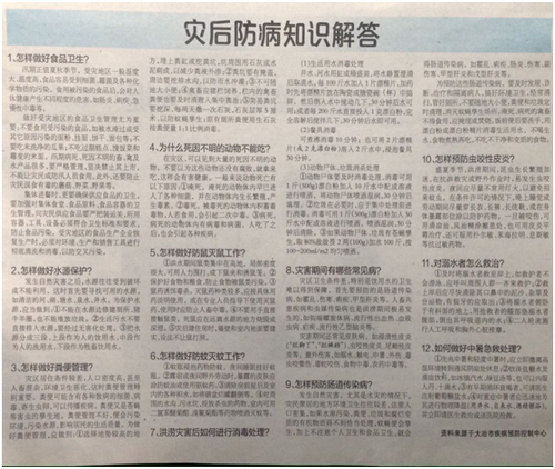 图为:中心在“今日大冶”报纸上刊登《灾后防病知识解答》