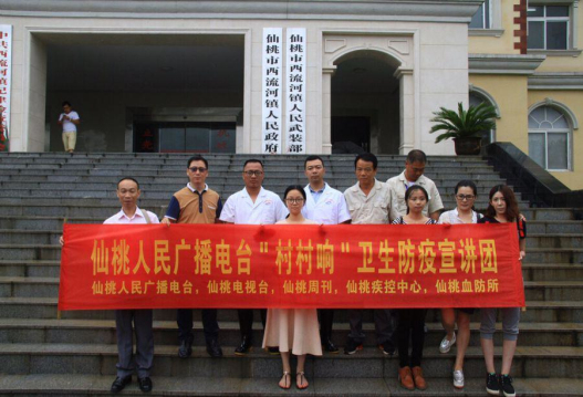 7月15日上午,仙桃市疾控中心与市血防所、仙桃人民广播电台、仙桃电视台组成的“仙桃市抗洪救灾防病宣讲团”一行来到西流河镇开展“村村响”卫生防疫宣讲活动。