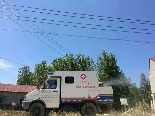 省疾控中心国家卫生应急队克服车辆频繁运行导致车辆故障的困难,在预定时间728日准时抵达天门市,在省卫计委防汛救灾应急指挥部的统一指挥下,省疾控中心国家卫生应急队为了让灾区群众尽快重返家园,恢复重建,顶着烈日,顽强拼搏,连续作业,饭顾不上吃,水顾不上喝,衣服汗湿了又蒸干了,一条条街道,一间间学校,一家家医院,认真作业一丝不苟,不放过任何一个死角,仅用两天半的时间,即完成了黄潭镇、渔薪镇、石河镇、蒋湖镇、拖市镇等五个灾情最严重乡镇学校、医院、政府、灾民安置点等人群聚集场所及街道共计135万平米的消杀工作,并对这五个乡镇的13处恢复集中供水区域取末梢水进行了30项水质指标应急检测。至730日中午1230分圆满完成了全部应急救灾防病任务。