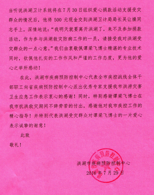 汉阳区区疾控中心抗洪救灾卫生应急工作简讯