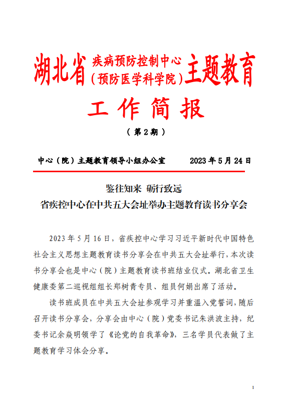 鉴往知来 砺行致远 省疾控中心在中共五大会址举办主题教育读书分享会